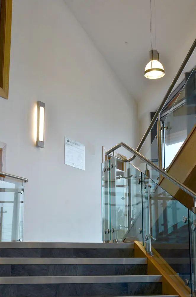 Stairwells and atria often benefit from large glazed areas to introduce daylight, so energy can be saved by automatically dimming and switching.