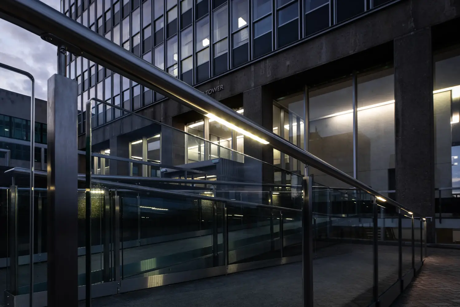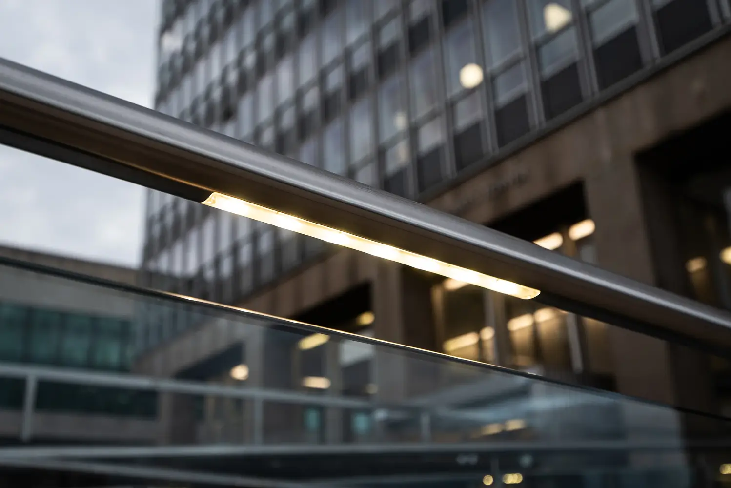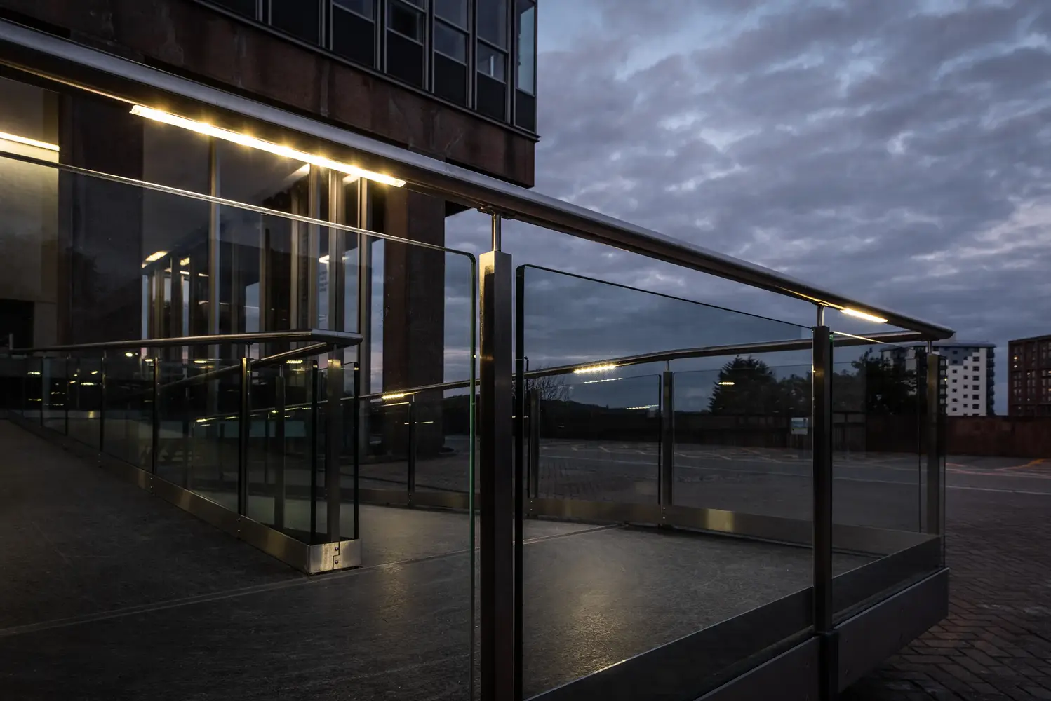 Thorlux collaborated with the main contractor and their balustrade provider to provide a bespoke integrated solution, resulting in a fully compliant and architecturally pleasing scheme. Standards considered and adhered to in the design and installation include BS 8300-2:2018 (Design of Accessible and Inclusive Built Environment), Approved Document M (Access To and Use of Buildings), BS EN 1991 (Actions on Structures), and BS 6180 (Barriers In and About Buildings). Furthermore, the handrail lighting was commissioned by Thorlux engineers to guarantee optimum performance.