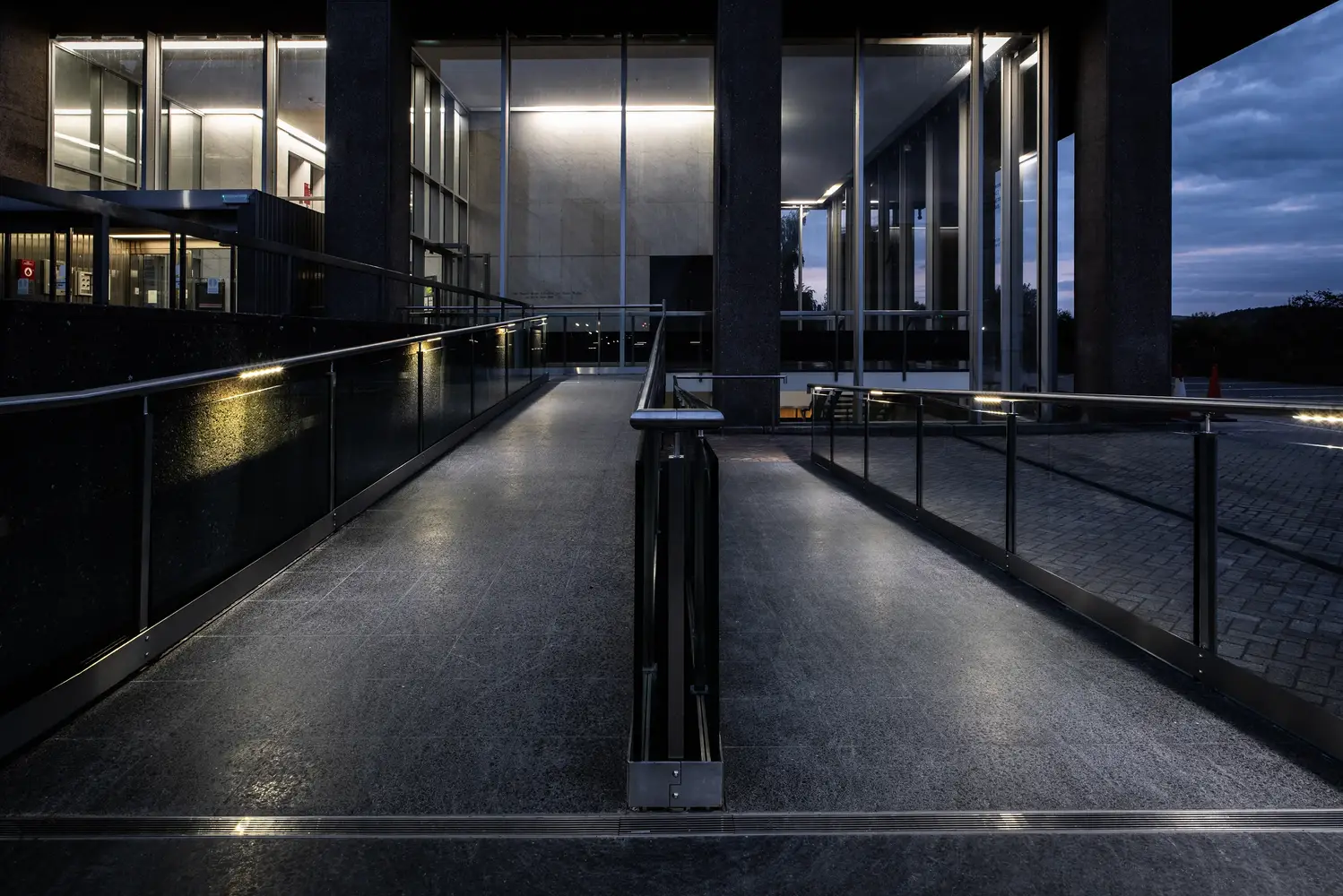 To improve accessibility to the tower, the main external entrance ramp has been renovated and fitted with Thorlux Brink illuminated handrails.