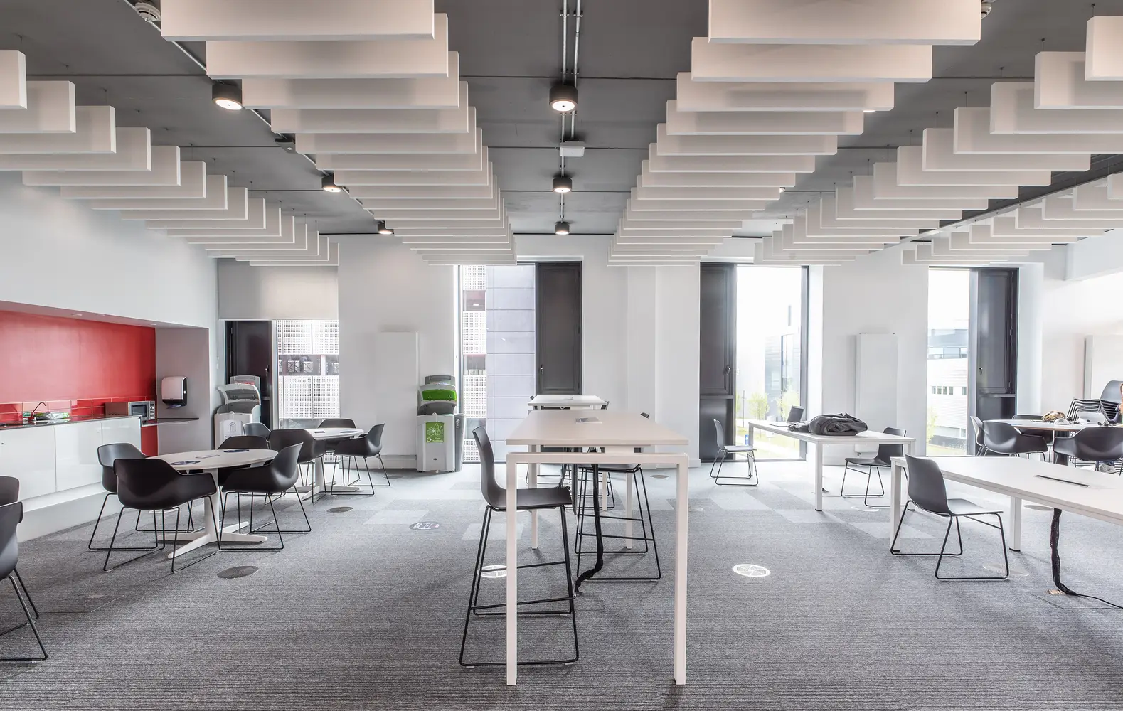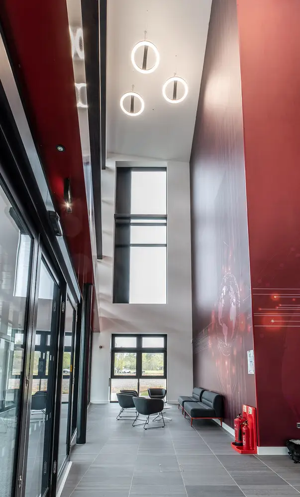 Clara 720 luminaires were chosen for the entrance atrium space. The unique design of the Clara 720 delivers a versatile lighting solution for a wide range of commercial and retail applications. The dramatic circular profile incorporates direct and indirect lighting which enhances the interior environment and creates an elegant effect within the space.